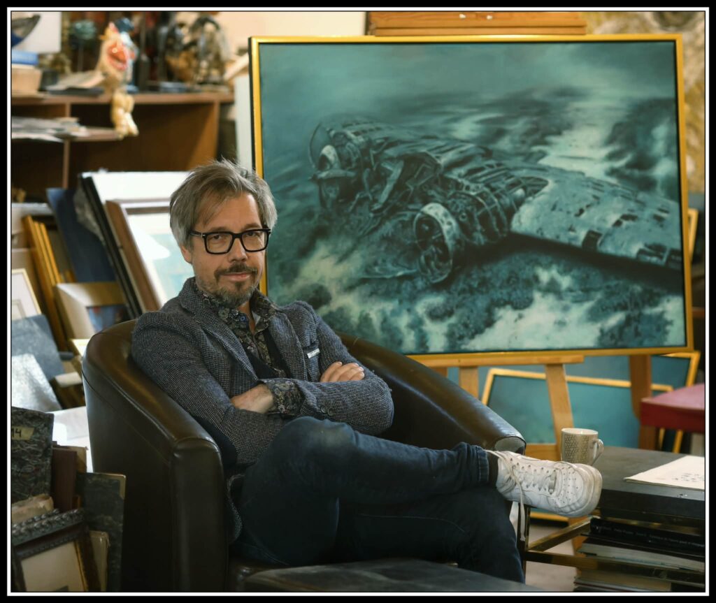 Trzeba sięgnąć do czasów, kiedy byłem nastolatkiem. To były lata osiemdziesiąte, dziewięćdziesiąte. Jak wielu chłopców w tamtym czasie, a to są czasy sprzed Internetu, więc większość chlopcow z nas miała jakieś kreatywne hobby, a to też czas, kiedy pasje naturalnie się pojawiają, a wynikają z odkrywania świata. W przypadku chłopców modelarstwo było taką dziedziną, w której się odnalazłem, ale jeżeli chodzi o lotnictwo, samoloty, to rzeczywiście jestem entuzjastą po prostu. Miałem szczęście być na wielu pokazach lotniczych w kraju i za granicą, zwiedzić liczne muzea i widzieć na własne oczy najsłynniejsze maszyny, które są ważną częścią krwawej historii naszej planety. Tak więc, uwielbiam tę formę jako taką, techniczne aspekty związane z lotnictwem, a to hobby dostarczało przy okazji dużo wiedzy, sporo wtedy czytałem literatury historycznej i specjalistycznej. Kiedy jednak rozpoczęła się szkoła średnia, studia, okazało się, że literatura piękna wzięła górę i gdzieś to modelarstwo poszło w kąt zupełnie, a pasja lotnicza przeszła w stan uśpienia. Po latach zaczęła się jednak pojawiać, ba, wynurzać nomen omen, w formie chyba jednak szlachetniejszej jaką jest malarstwo. Wydaje się, że czułem potrzebę, aby połączyć materię wody, formę samolotu, utopić je w jednolitej atmosferze wody. Ale jak często podkreślam wraki są właściwie dla mnie rodzajem martwej natury, a to jest także wielkie wezwanie, jeśli chodzi o kwestie natury technicznej, różnego rodzaju rozwiązania kompozycyjne, głębię, fakturowość, no i ta pogoń za atmosferą. Nie wiem w jakim kierunku to pójdzie i choć nadal z entuzjazmem podchodzę do każdego wraku, to myślę, ze z czasem pojawi się coś i innego. Woda jest wieczna. Zobaczymy.