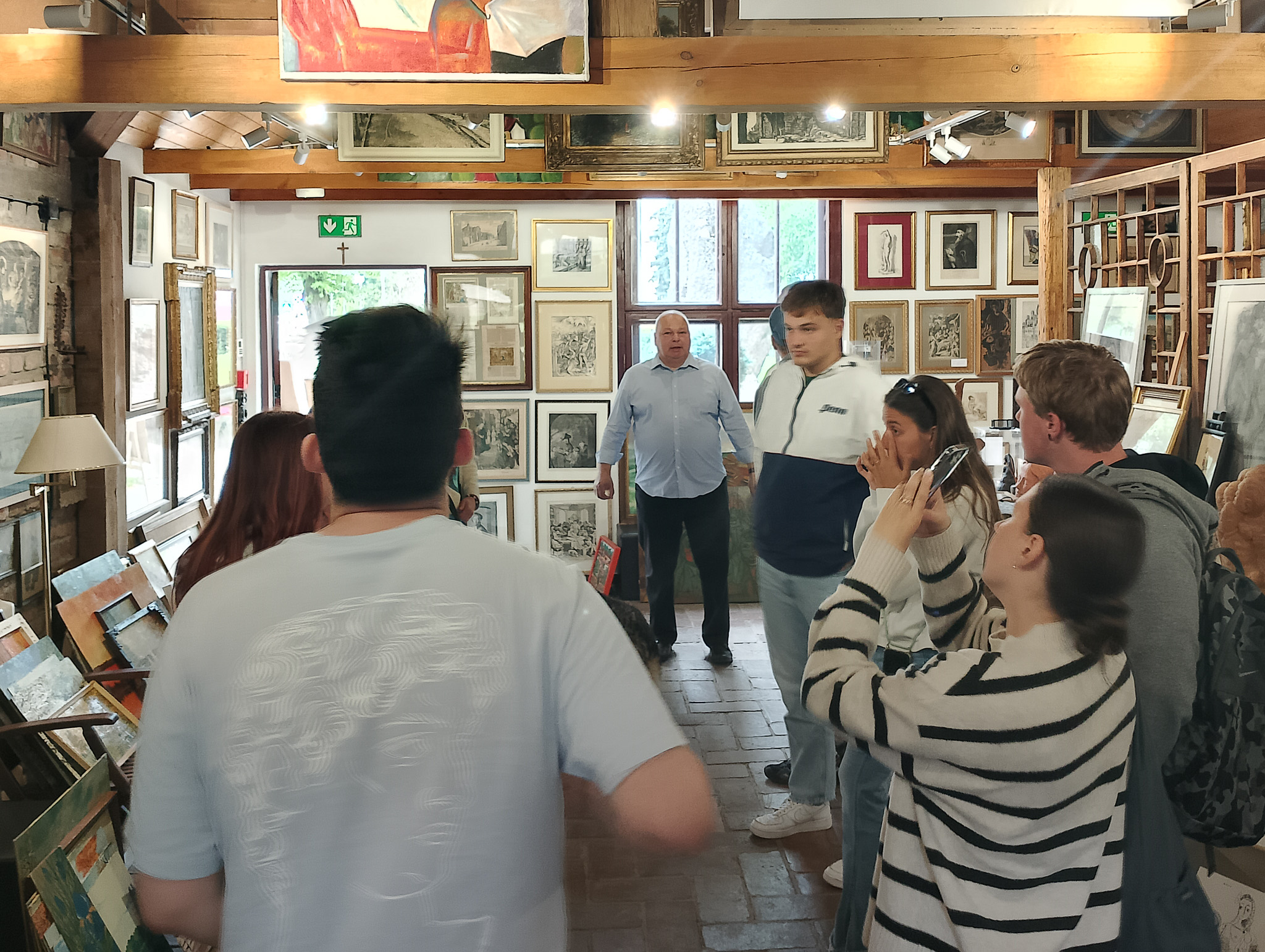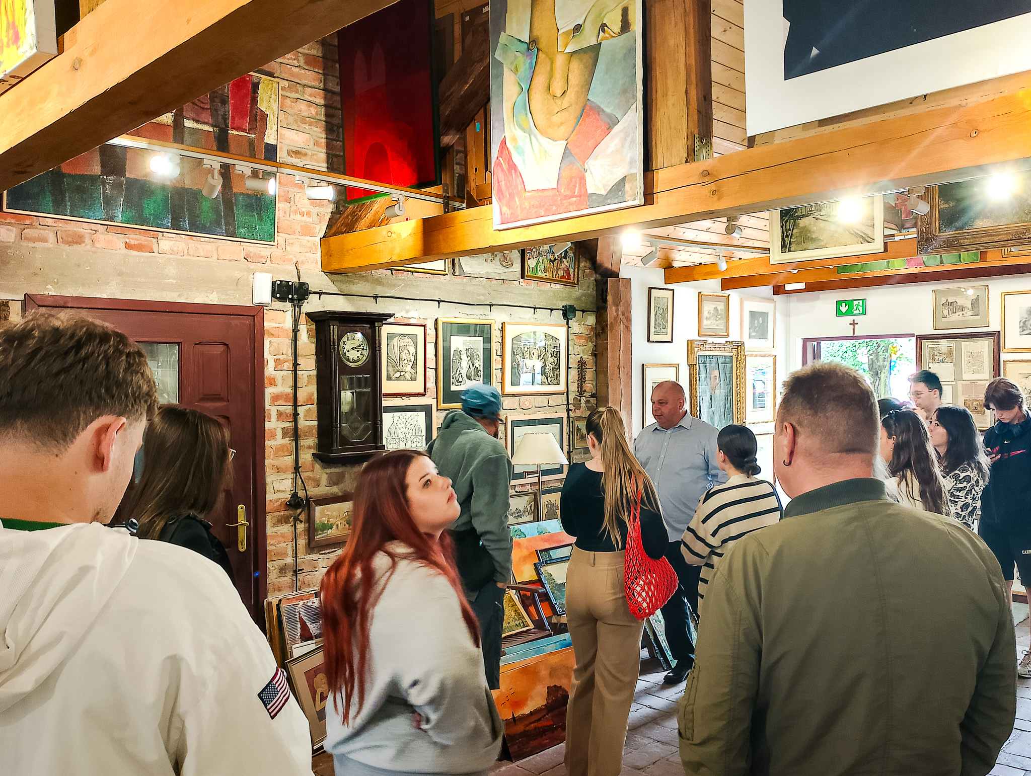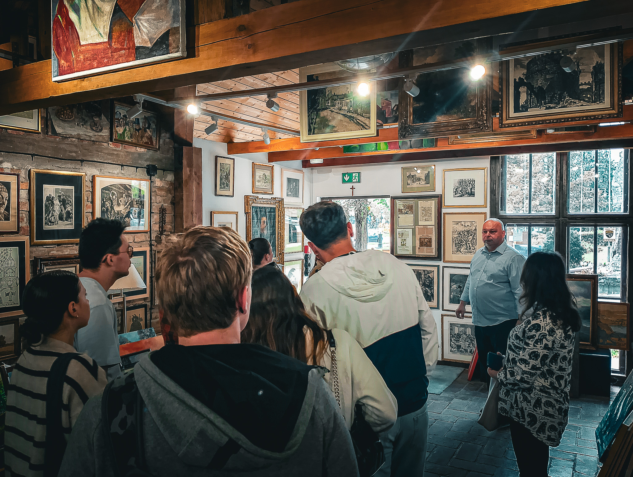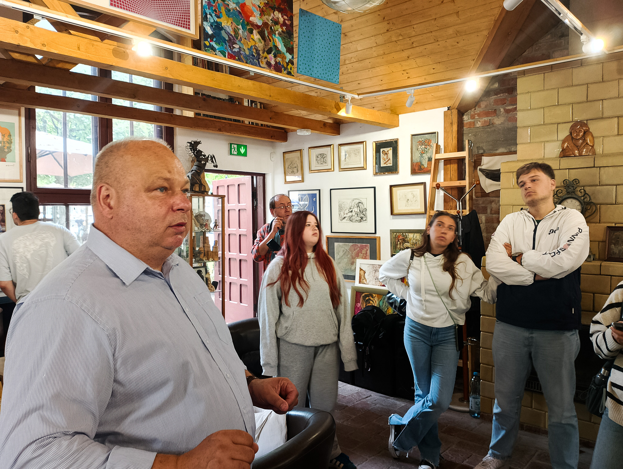 Nasi odwiedzający obejrzeli dzieła – od malarstwa starych mistrzów, po rzeźby i grafiki sztuki nowoczesnej. Pan Dariusz Matyjas oprowadził wszystkich po galerii oraz schronie, prowadząc ciekawą prelekcję na temat historii tego miejsca. Mogli także zapoznać się z ciekawostkami dotyczącymi tego, jak powstał budynek galerii, a wszystko to w języku angielskim. Wszyscy z zaciekawieniem wysłuchali wykładu a na koniec napili się kawy w trzygaleryjnym ogródku.