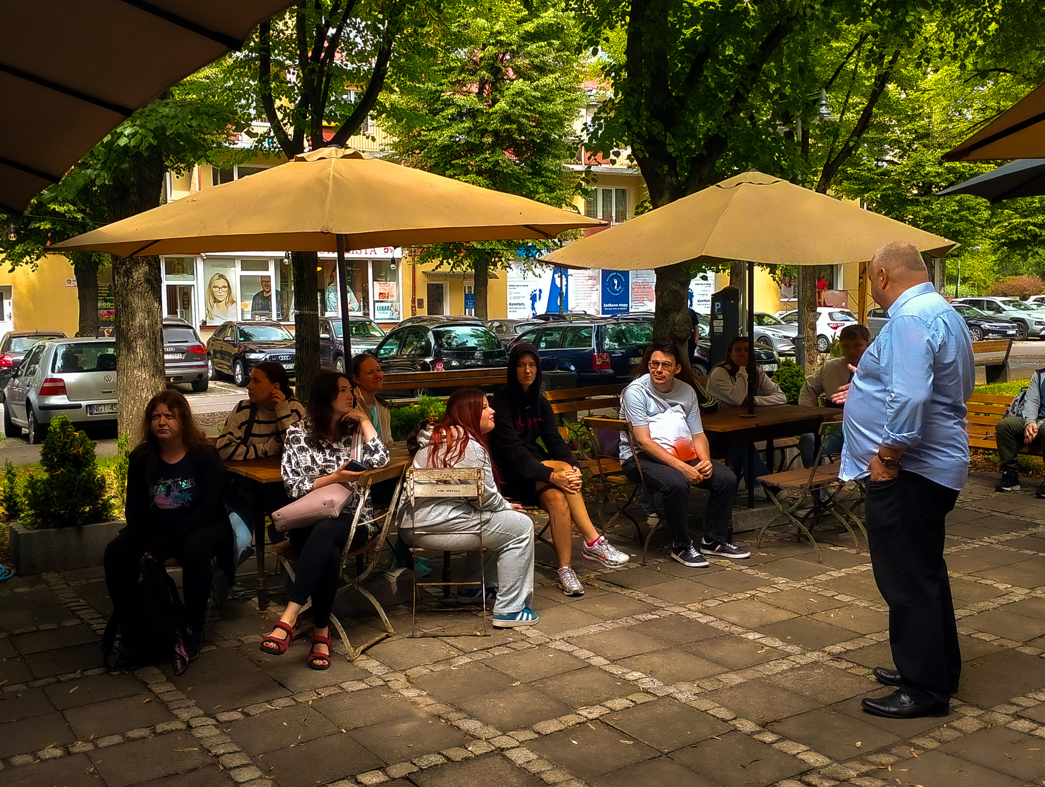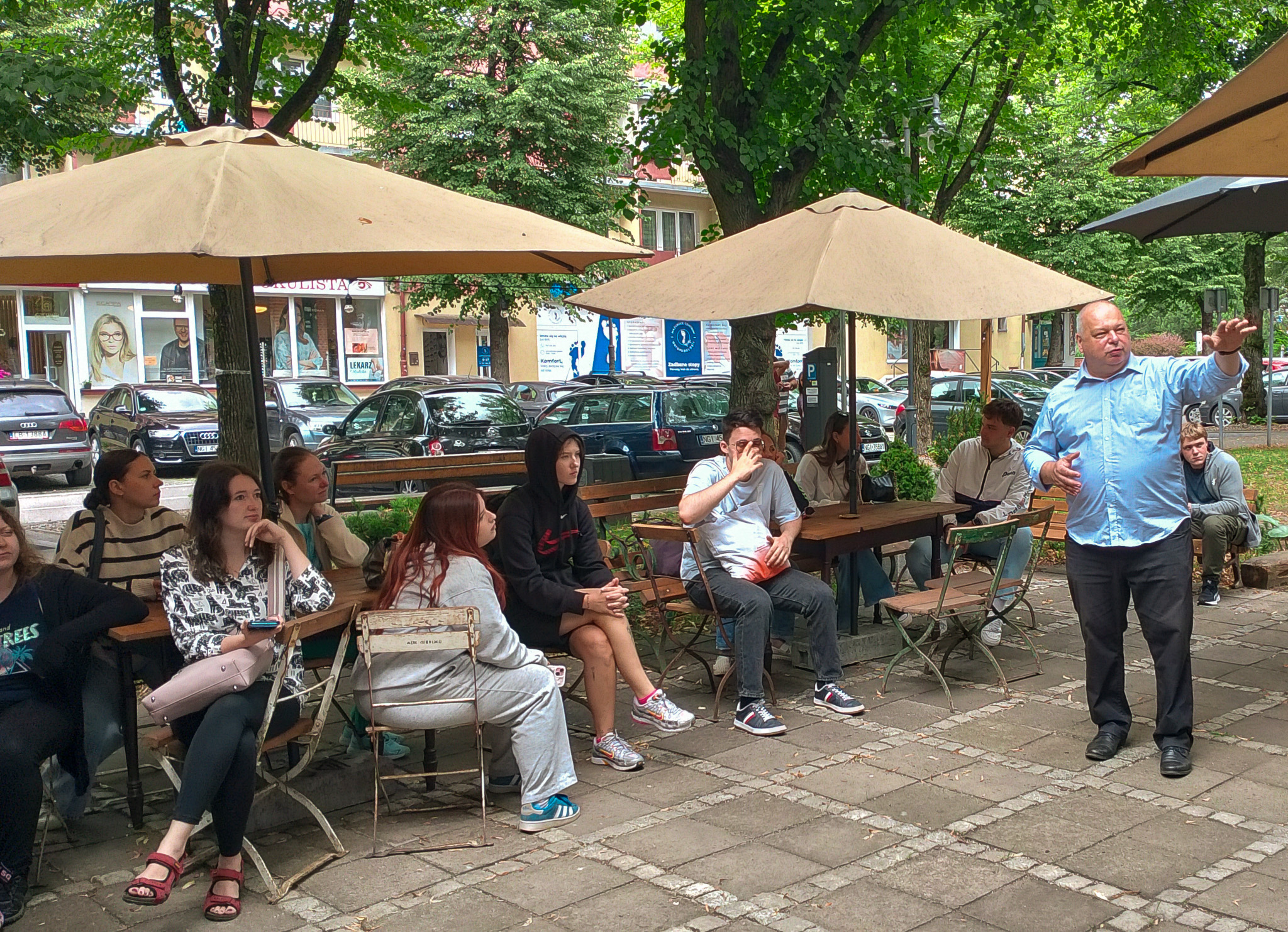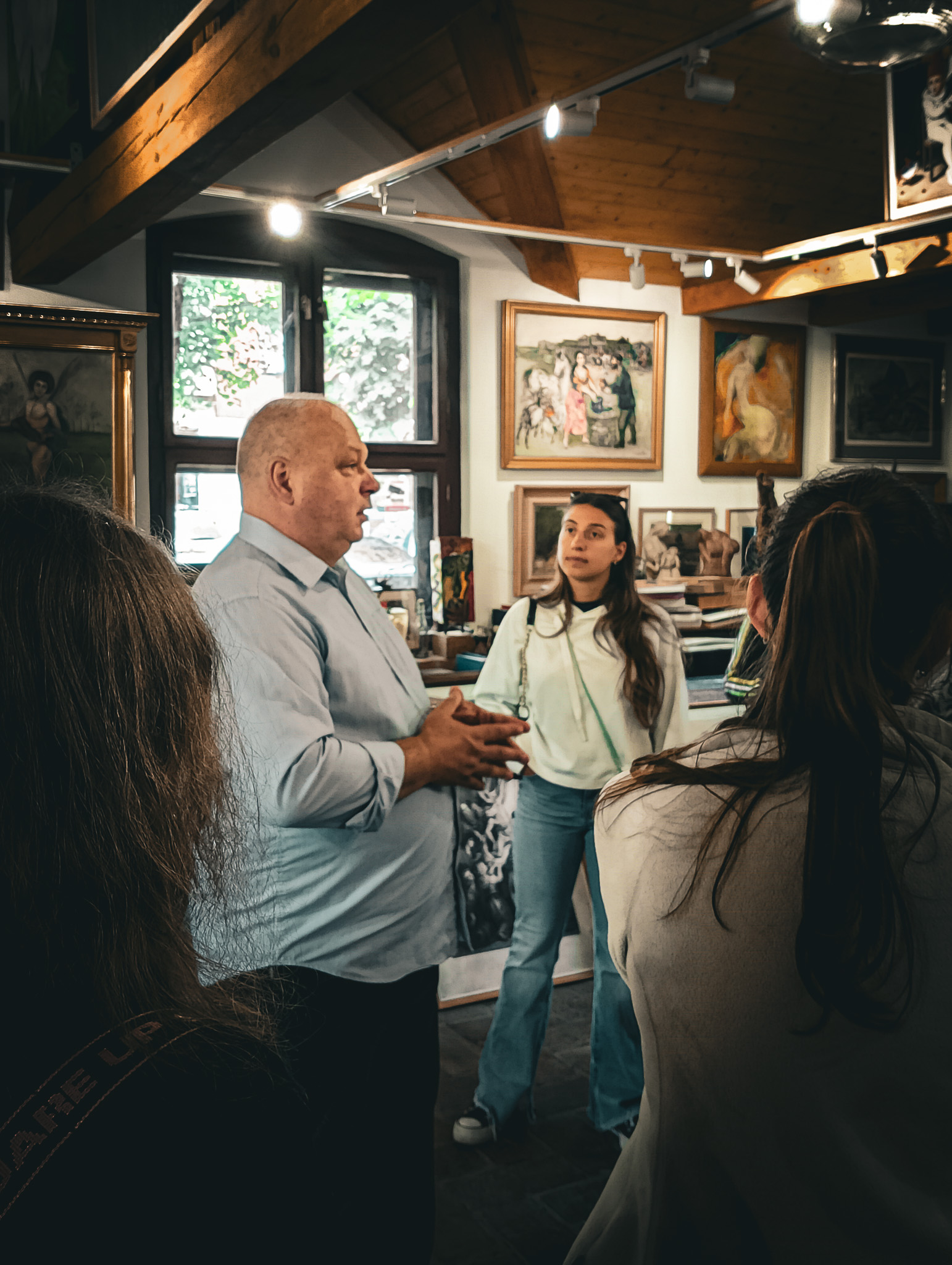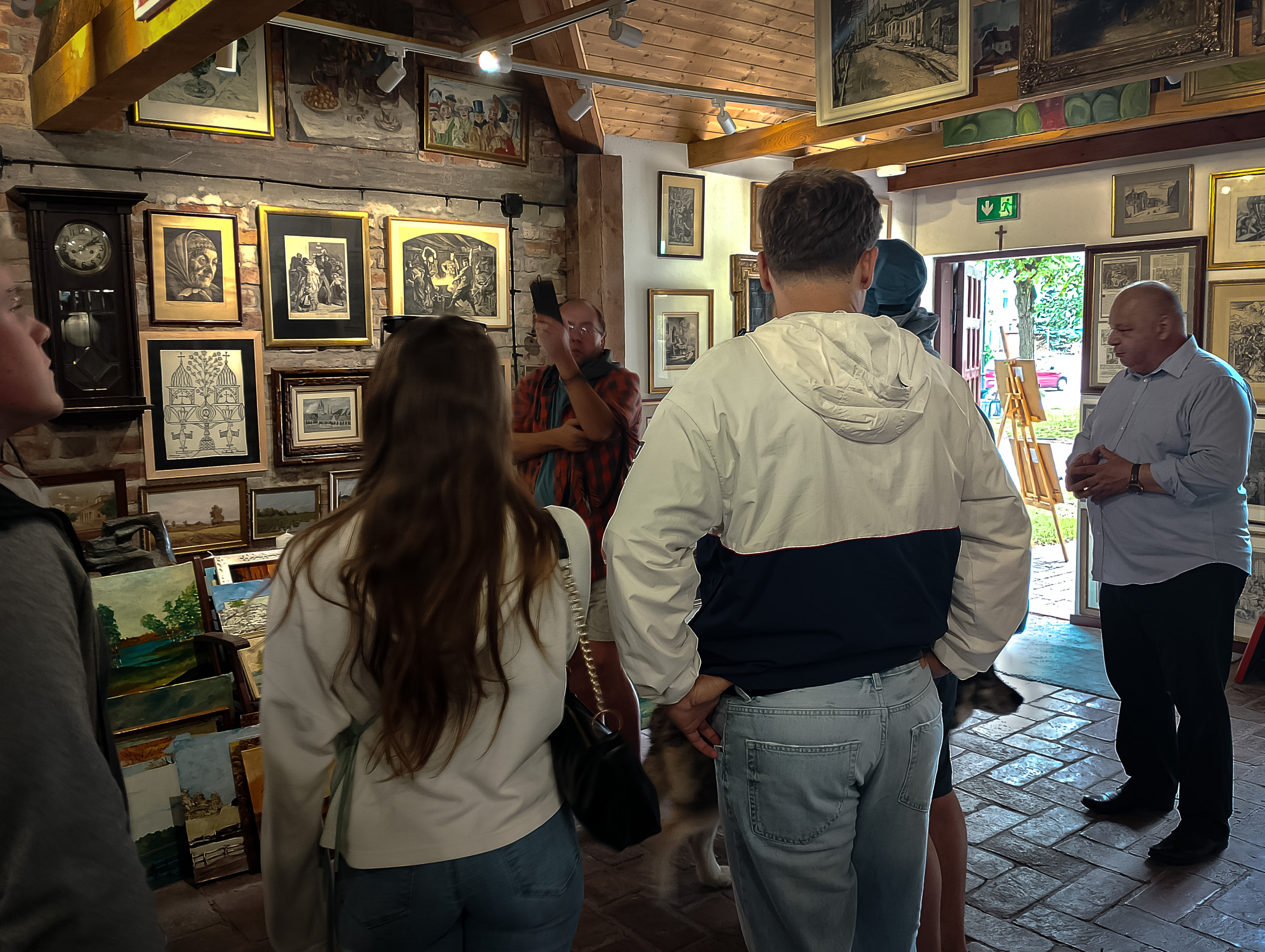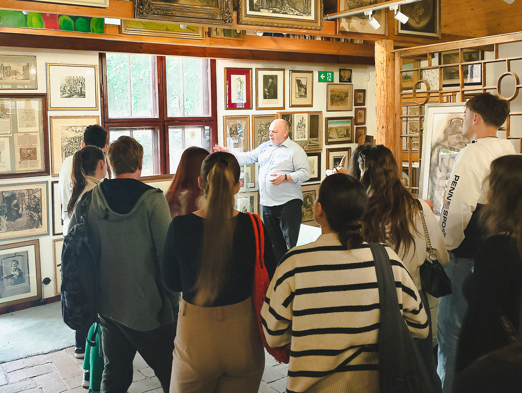 Nasi odwiedzający obejrzeli dzieła – od malarstwa starych mistrzów, po rzeźby i grafiki sztuki nowoczesnej. Pan Dariusz Matyjas oprowadził wszystkich po galerii oraz schronie, prowadząc ciekawą prelekcję na temat historii tego miejsca. Mogli także zapoznać się z ciekawostkami dotyczącymi tego, jak powstał budynek galerii, a wszystko to w języku angielskim. Wszyscy z zaciekawieniem wysłuchali wykładu a na koniec napili się kawy w trzygaleryjnym ogródku.