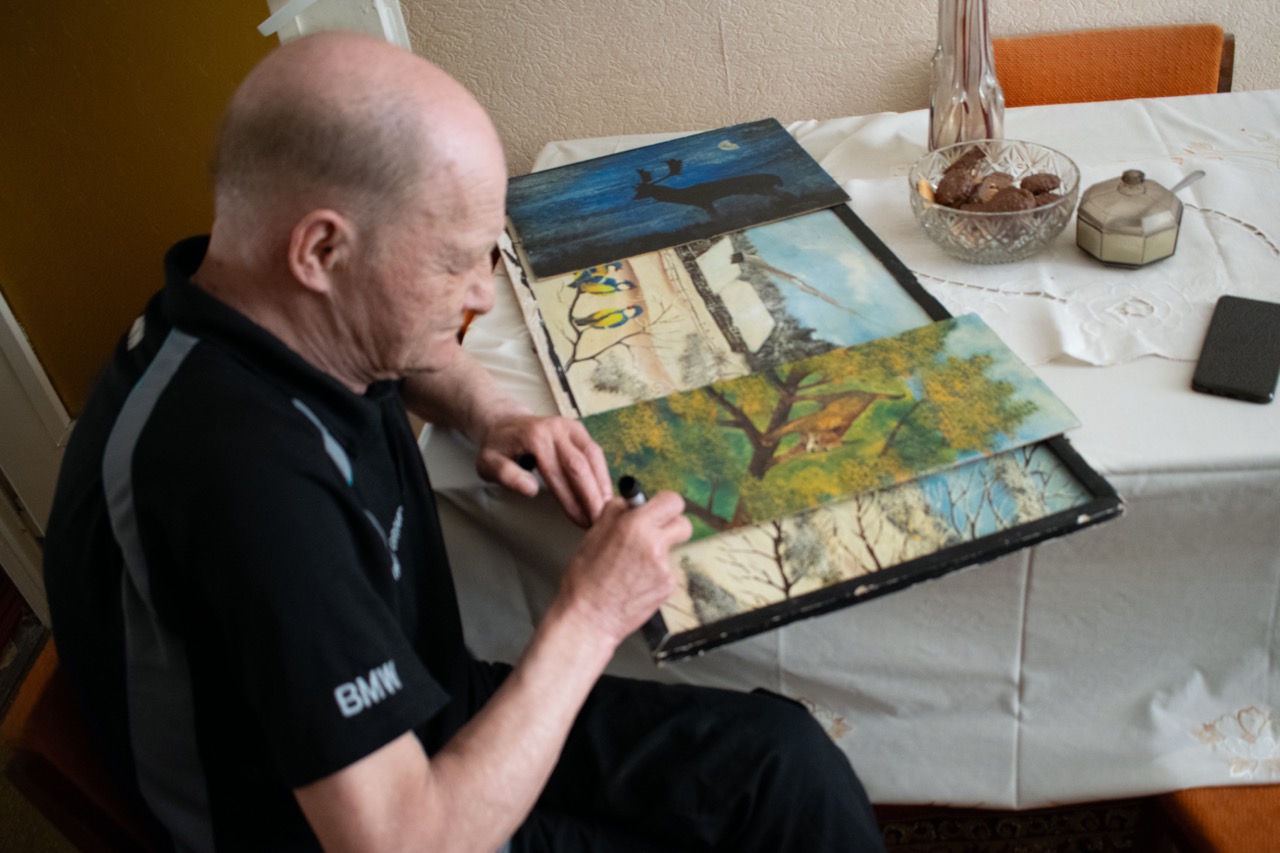 W ostatnim tygodniu namalowałem 11 obrazów. Lubię też malować jak odwiedzają mnie wnuki mojego brata – pokazuje im jak malować zwierzątka. Zawsze im się to podoba, a potem same przychodzą już żeby im tylko coś namalować.